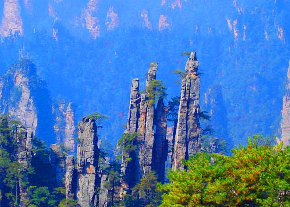 下 午: 漫步游覽“中國最美麗的大峽谷”——【金鞭溪】:金鞭溪是天然形成的美麗溪流,因金鞭巖而得名,溪谷植被繁茂,溪水四季清澈,被稱為“山水畫廊”、“人間仙境”。全長7.5公里,步行約2.5小時。沿途游覽金鞭巖、神鷹護鞭、劈山救母、醉羅漢、文星巖、紫草潭、千里相會、水繞四門、觀音送子、師徒取經(jīng)、長壽泉、蠟燭峰、雙龜探溪、秀才藏書等著名景點;乘環(huán)保車至武陵源門票站。
