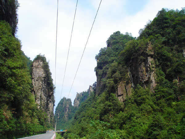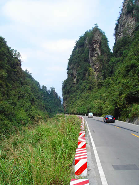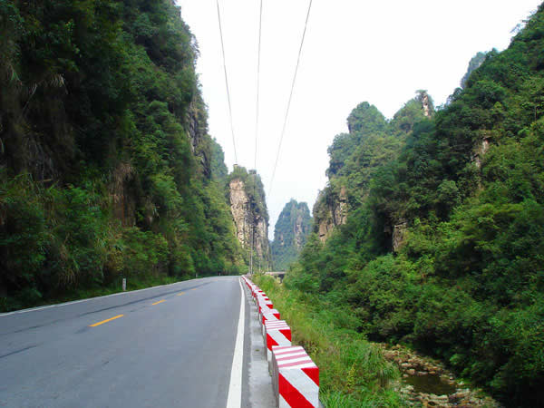 百丈峽圖片 百丈峽是武陵源風(fēng)景名勝區(qū)通往張家界市的公路貫通整個(gè)峽谷,因有堵高近百丈的石壁,直插云霄,不敢仰視,故而得名。據(jù)《慈利縣志》載,索溪峪右得百丈峽,峽長(zhǎng)三十公里……又相傳向王天子起義軍與官兵在此先后博殺一百仗,依此又名百仗峽。明代九永兵備胡桂芳,一生好游歷山川,來到百丈峽后題寫了一首七言詩:“峽高百丈洞云深,要識(shí)桃源此處尋;戎旅徐行風(fēng)雪緊,誰將興盡類山蔭!笨逃趰{內(nèi)道旁石壁上。
