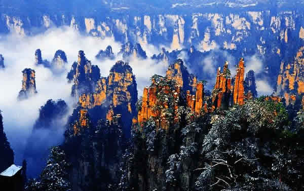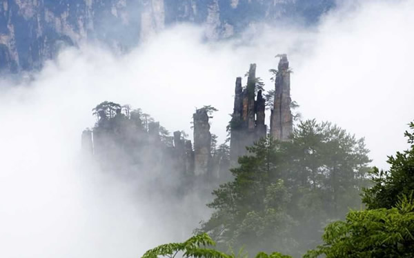| 御筆峰坐落于天子山自然保護(hù)區(qū),是天子山風(fēng)景區(qū)的最佳景點(diǎn)之一, 峰高100余米,數(shù)峰參差并列,據(jù)說(shuō)是向王天子兵敗時(shí)丟棄的御筆所化成的山峰。歸類于石家檐游覽線。山谷中數(shù)十座錯(cuò)落有致的秀峰突起,遙沖藍(lán)天,靠右的石峰像倒插的御筆, 靠左的石峰似擱筆的“江山”。此景變化萬(wàn)千,日照霞染生輝,云霧涌動(dòng)時(shí)隱時(shí)現(xiàn),春月透過(guò)花叢,五層峰巒相迭。