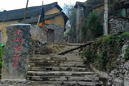 這里是一座石頭城,呈九宮八卦布局,設(shè)計(jì)精巧,而且攻防體系和排水體系都相當(dāng)完整,這里曾有著富足而輝煌的歷史。直到民國(guó)25年,烏龍山土匪1000多人攻打老洞苗寨12天12夜,燒掉老洞古建筑群2座,搶走銀光洋一萬(wàn)余塊,銅元一萬(wàn)多斤,銀錠300多斤,從此以后老洞苗寨沒(méi)落深山,步入貧窮而漸漸地不為人知。