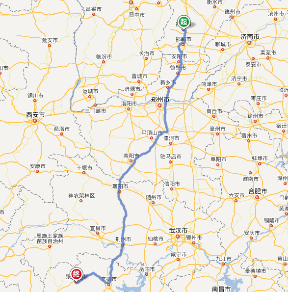 邢臺(tái)到張家界自駕車(chē)路線地圖(距離最短)