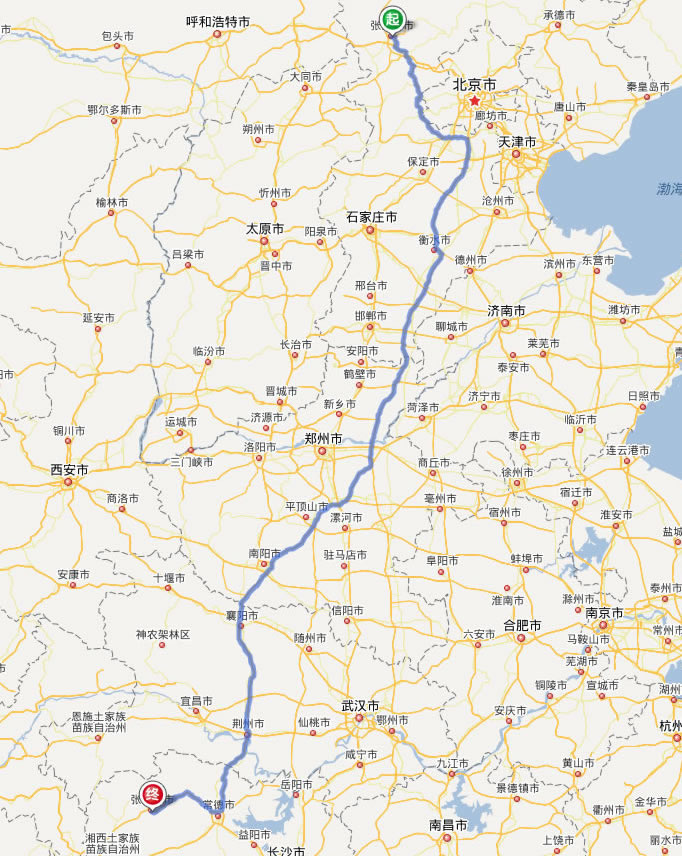 現(xiàn)在位置:張家界旅行社->交通指南->自駕車路線 -> 張家口到張家界自駕車線路,張家口去張家界自己開車要多長時間,有多少公里