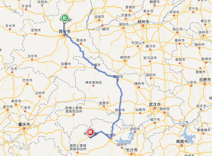 左右,沿途經過銅川——西安——十堰——襄陽——荊門——荊州——澧縣——石門縣——慈利縣——張家界市。