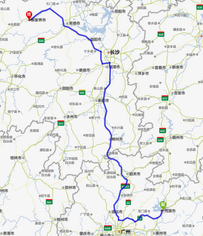 現(xiàn)在位置:張家界旅行社->交通指南->自駕車(chē)路線 -> 河源到張家界旅游自駕車(chē)線路_河源去張家界自駕車(chē)要多長(zhǎng)時(shí)間_有多少公里