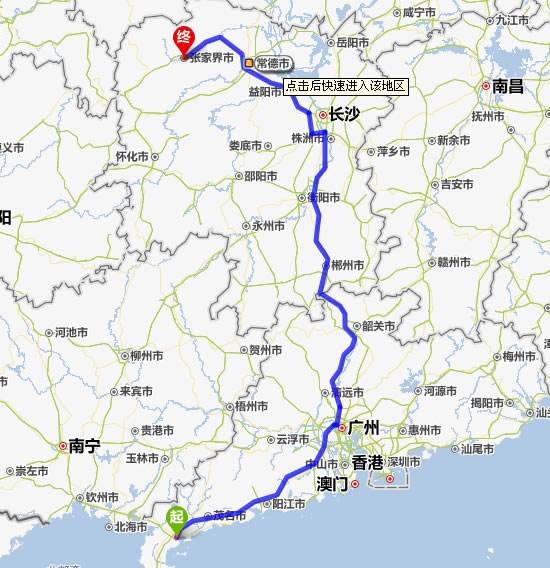 現(xiàn)在位置:張家界旅行社->交通指南->自駕車路線 -> 湛江到張家界旅游自駕車線路,湛江去張家界自己開(kāi)車要多長(zhǎng)時(shí)間,有多少公里