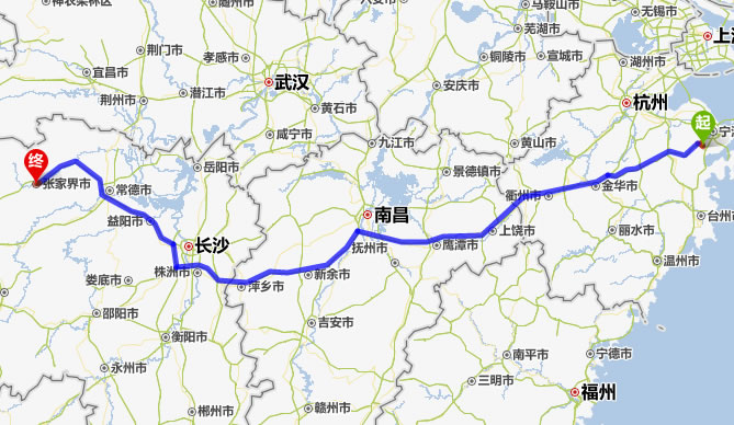 奉化到張家界自駕車(chē)旅游線(xiàn)路(距離最短)