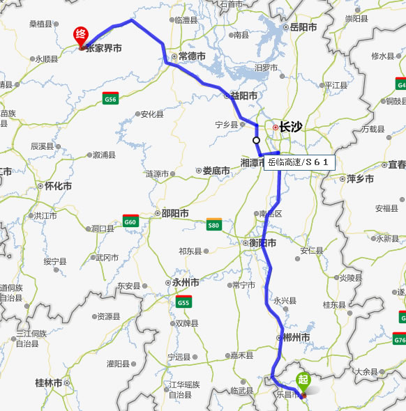 樂(lè)昌去張家界自駕車自助游線路圖全程高速):