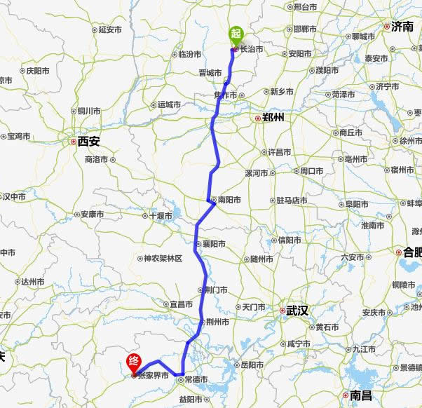 長(zhǎng)治到張家界自駕車(chē)旅游線(xiàn)路(距離最短)