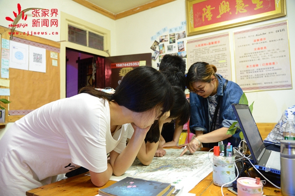 客棧工作人員為游客設(shè)計旅游路線