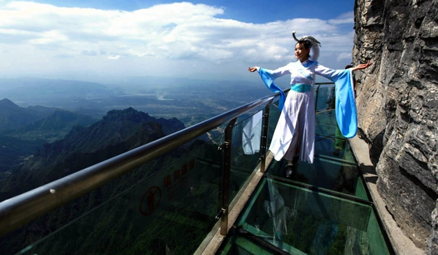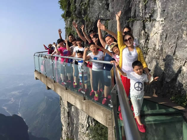 【張家界大峽谷玻璃橋】號(hào)稱世界最長、最高的全透明玻璃橋,玻璃橋總長430米、寬6米,橋面距谷底約300米,可站800人。橋面全部采用透明玻璃鋪設(shè),橋中心有全球最高的蹦極臺(tái),整個(gè)工程無鋼筋支架,是一種全玻璃結(jié)構(gòu)的橋梁。玻璃橋建成后,將成為世界首座斜拉式高山峽谷玻璃橋;并創(chuàng)下世界最高最長玻璃橋、首次使用新型復(fù)合材料建造橋梁等多項(xiàng)世界之最!