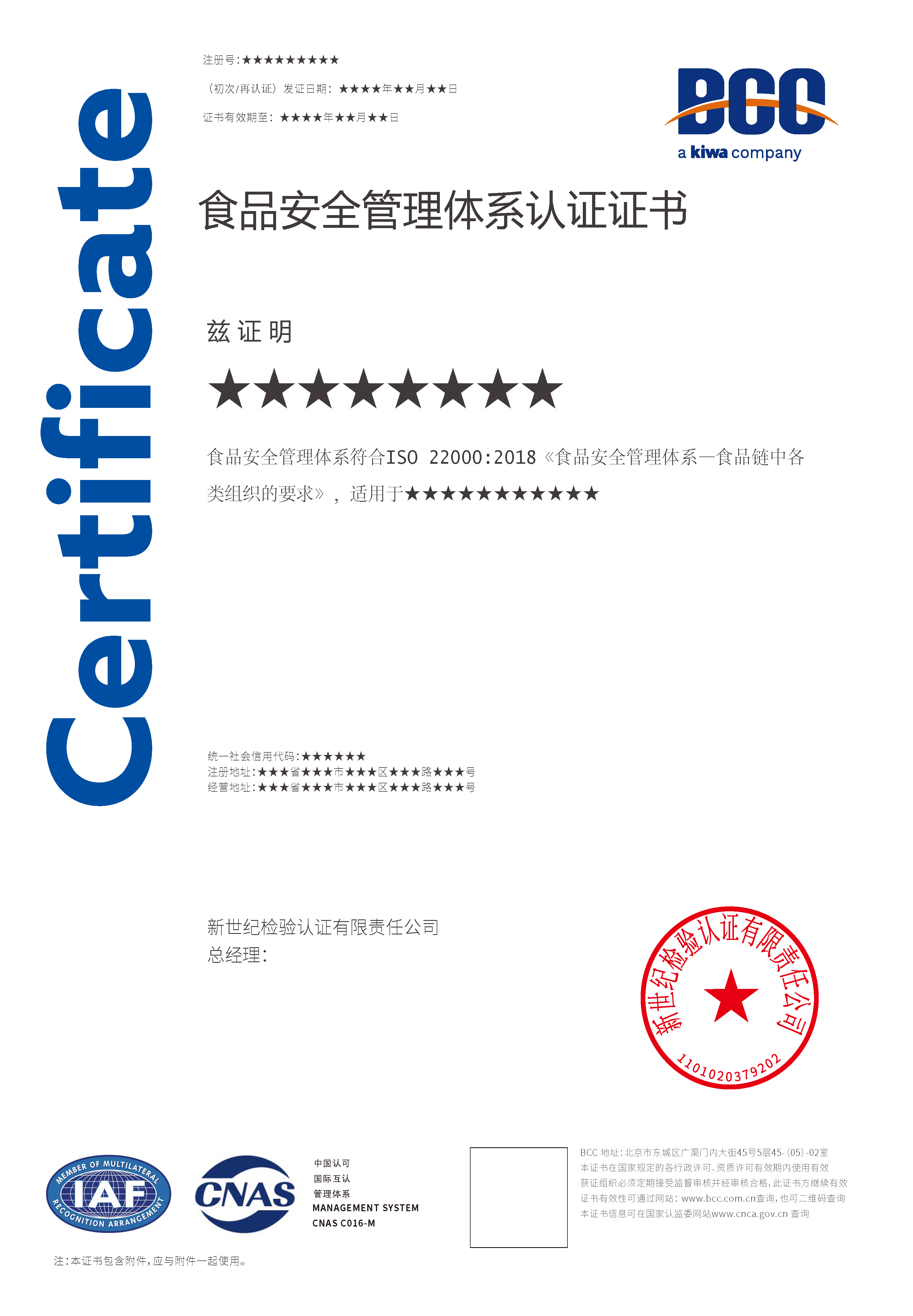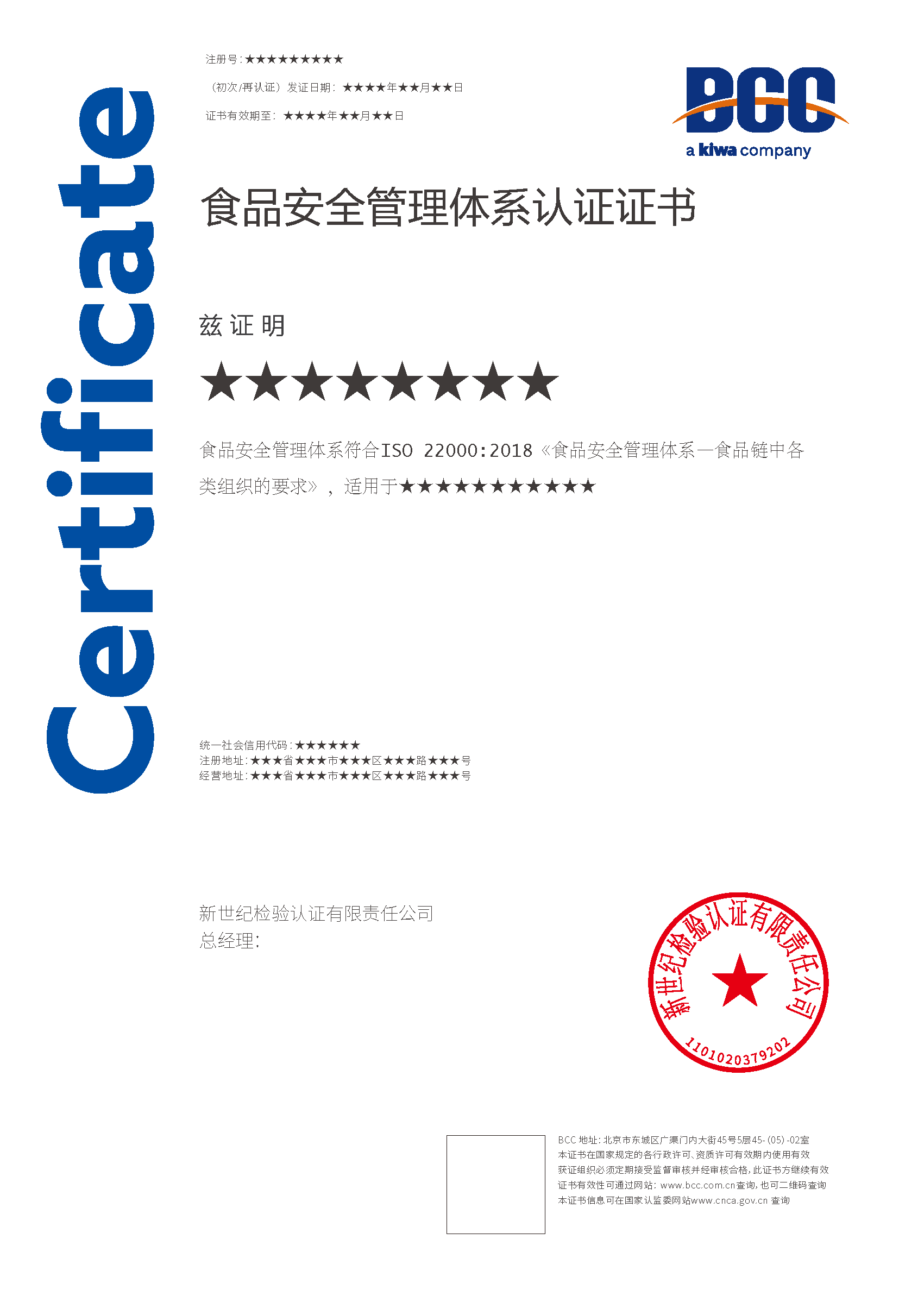 本頁涉及的認證服務(wù)中均有對應(yīng)的《認證實施規(guī)則》,BCC擁有其最終解釋權(quán)。任何組織及個人未經(jīng)BCC許可,不得以任何形式全部或部分使用(法律要求除外)認證相關(guān)信息。如需獲取相關(guān)實施規(guī)則請用以下方式聯(lián)系獲取:電話:010-58579316 郵箱:fwjs@kiwa.cn